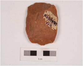 | Description / विवरण | A side scraper made on quartzite end struck flake, prepared platform, diffused bulb on ventral side, cortex on dorsal side and irregularly retouched edges. |