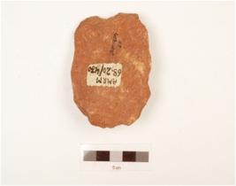 | Description / विवरण | A cleaver made on quartzite end struck flake, partly broken along the working edge, prepared platform, prominent bulb on ventral side, wavy working edge and plano-convex in cross section. |