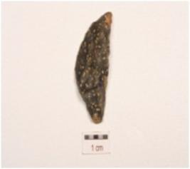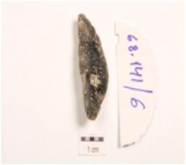 | Description / विवरण | Scraper made on side struck chert flake, a prominent ridge on dorsal surface, irregular cutting edges and smooth surface. |