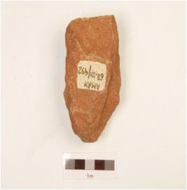| Description / विवरण | A handaxe made on quartzite on end struck flake, prepared platform, bic-convex in cross section and flake scars on both sides. |