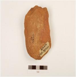 | Description / विवरण | A chopping tool made quartzite end struck flake, wavy working edge, cortex partly intact on one side and bi-convex in cross section. |