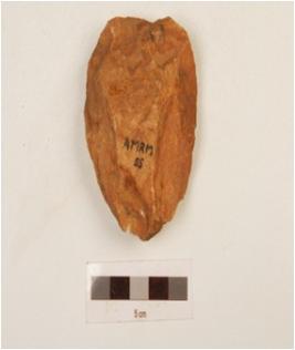 | Description / विवरण | A scraper made on quartzite end struck flake, bulb absent, prepared platform, bi-convex in cross section, and wavy working edge. |
