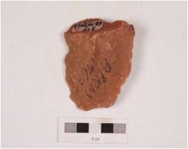 | Description / विवरण | A side scraper made on quartzite end struck flake, prepared platform, flake scars on dorsal side, diffused bulb on ventral side and irregularly retouched edge. |