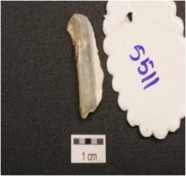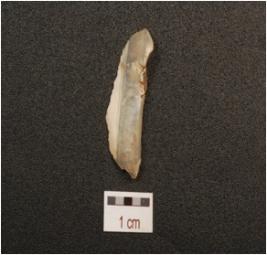| Description / विवरण | Blade made on chalcedony with single ridge on dorsal side, triangular corss section diffused bulb on ventral side, use wear marks along the working edge. |