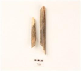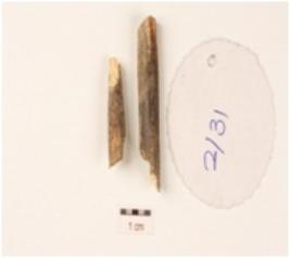 | Description / विवरण | Two fragment of bone point, triangular cross section and smooth surface. |
