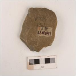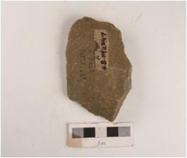 | Description / विवरण | A side scraper made on side-struck flake irregular retouching marks, one prepared platform and diffused bulb on ventral. |