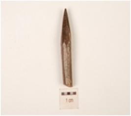 | Description / विवरण | Charred bone point, has faceted point tip one end is pointed polished surface and circular section. |