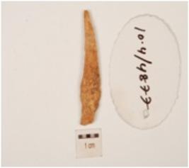 | Description / विवरण | Fragment bone point with polished surface, pointed tip is broken and has rectangular section. |