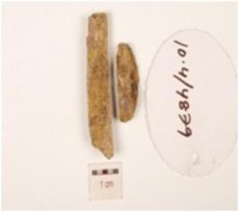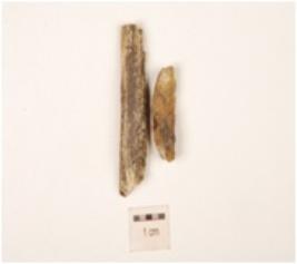 | Description / विवरण | Charred unfinished bone point broken into 2 pieces and surface is rough. |
