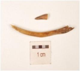 | Description / विवरण | Fragment of bone point, broken into 2 pointed tip, polished and curved. |