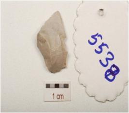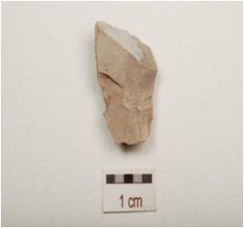 | Description / विवरण | Flake made on chert, prepared platform, flake scars on surface, diffused bulb on ventral side. |