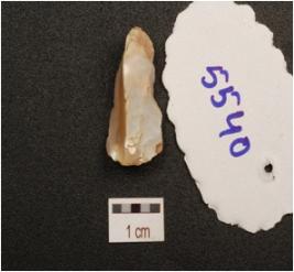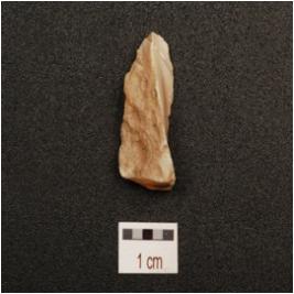 | Description / विवरण | Flake made on chalcedony prepared platform, flake scars on surface, diffused bulb on ventral side. |