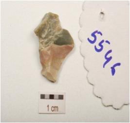 | Description / विवरण | Flake made on chert, flake scars on dorsal side, prepared platform prominent bulb on ventral side. |
