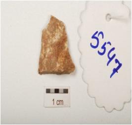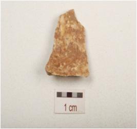 | Description / विवरण | Flake made on chert, prepared platform flake scars on dorsal side, diffused bulb on ventral side. |