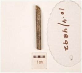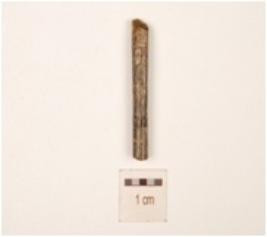 | Description / विवरण | Fragment of a charred bone point, has polished surface, circular section and both ends are broken. |