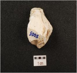 | Description / विवरण | Core made on chert blade, flake scars on surface, uneven surface white in colour. |