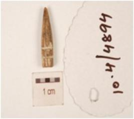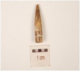| Description / विवरण | Pointed tip of a bone point with has polished surface and circular section. |