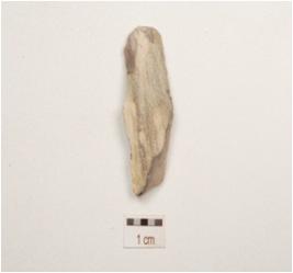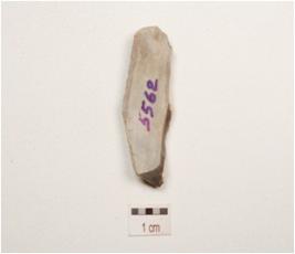 | Description / विवरण | Flake made on chert, broken on both ends, flake scars on dorsal side, use wear mark along cutting edge. |