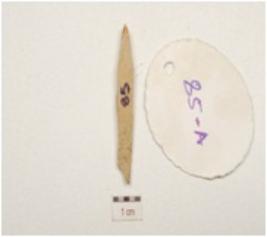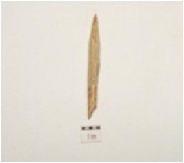 | Description / विवरण | Fragment of bone point with polished surface, pointed at one end, half broken, plano convex in section and cream in colour. |