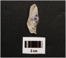 | Description / विवरण | A quartz scraper with flake scars on surface and use wear marks on working edge. |
