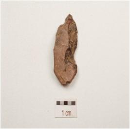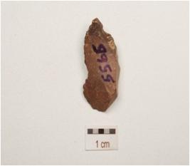 | Description / विवरण | Flake made on chert, pointed distal end, flake scars on dorsal side, slightly damage on one side, prepared platform prominent bulb on ventral side, use wear mark along cutting edge. |