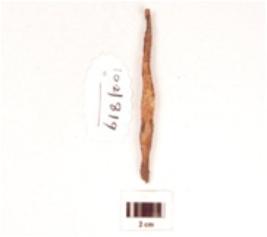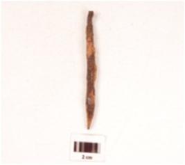 | Description / विवरण | An iron nail, flat top and broken both the ends, fragile in condition and chemically treated. |