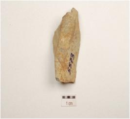 | Description / विवरण | Core made on chert, flake scars on surface, sharp, cutting edge. |