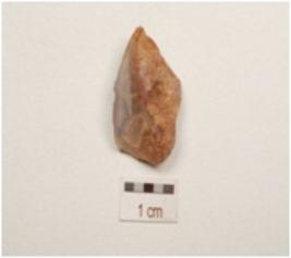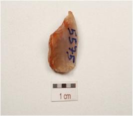 | Description / विवरण | Flake made on chalcedony flake scars on dorsal side, cortex on one side. |