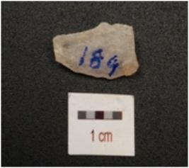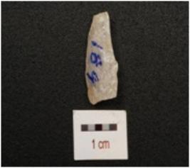 | Description / विवरण | A quartz blade with prominent mid ridge, triangular section, smooth ventral and use wear marks on working edge. |