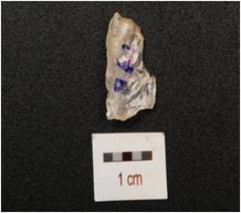 | Description / विवरण | A rock crystal flake with flake scars on surface and translucent. |