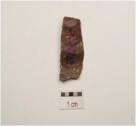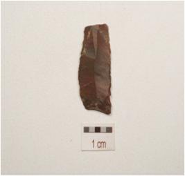 | Description / विवरण | Blade made on chert, prepared platform, broken on distal end, flake scars on dorsal side, use wear mark along cutting edge. |