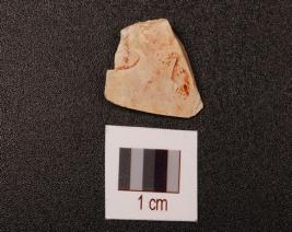 | Description / विवरण | A flake on chert with prepared platfrom, prominent bulb on ventral side. |