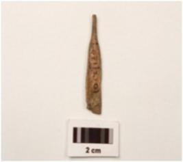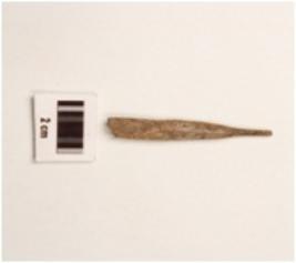 | Description / विवरण | A fragment of charred bone point with smooth surface, slightly broken from pointed end. |