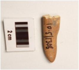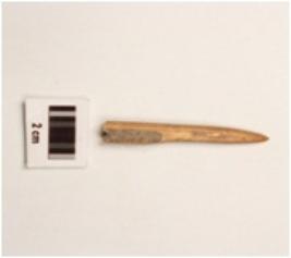 | Description / विवरण | A bone point with smooth surface, rectangular in section, partly broken from one end. |