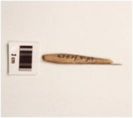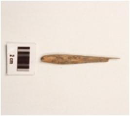 | Description / विवरण | A bone point fragment with smooth surface, partly broken from pointed tip. |