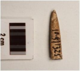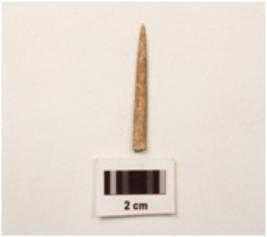 | Description / विवरण | A bone point, partly broken from one end, smooth surface. |