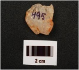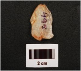 | Description / विवरण | A scraper with flake scars on dorsal, made on quartz, prominent bulb on ventral, prepared platform and use wear marks on cutting edge. |