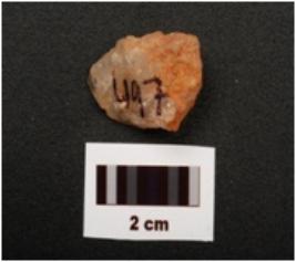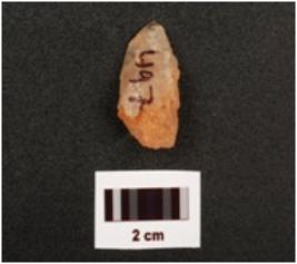| Description / विवरण | A flake made on quartz with flake scars on smooth surface. |