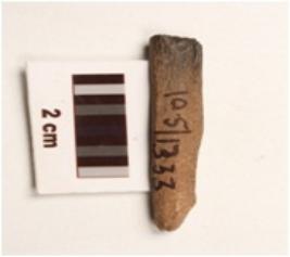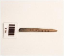 | Description / विवरण | A fragment of bone point with smooth surface, charred from one end, partly broken from both ends. |
