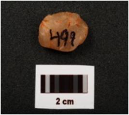 | Description / विवरण | A flake made on quartz stone, cortex is intact and flake scars on surface. |