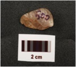 | Description / विवरण | A flake made of quartz stone, cortex is intact and flake scars on smooth surface. |