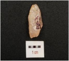 | Description / विवरण | A flake with flake scars on surface, prepared platform and made on quartz. |