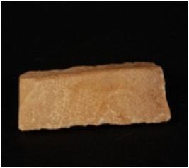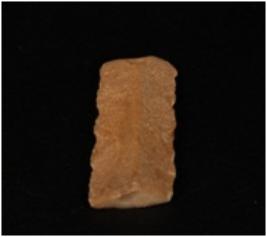 | Description / विवरण | Chert blade with a mid ridge on dorsal triangular in section, rough surface and use wear marks along the cutting edges. |