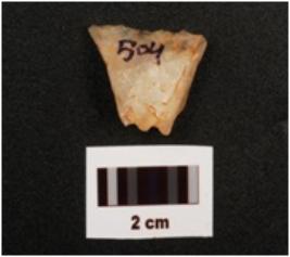 | Description / विवरण | A scraper with flake scars on dorsal, prepared platform, diffused bulb on ventral, use wear marks on cutting edge. |