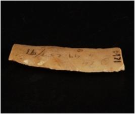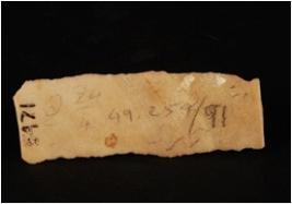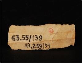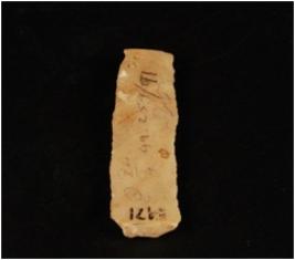 | Description / विवरण | Chert blade with two ridges on dorsal, trapezoidal in section and use ware marks along the cutting edges. |