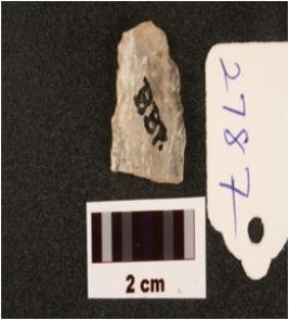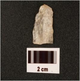 | Description / विवरण | Fragment of parallel sided mesolithic quartz blade with use wear marks on edges, two ridges on dorsal surface, trapezoidal in section, distal end broken, prominent bulb on ventral surface. |