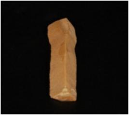 | Description / विवरण | Chert blade with a mid ridge on dorsal, triangular in section and use wear marks on cutting edge. |