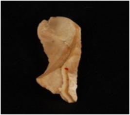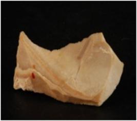 | Description / विवरण | Chert flake with use wear marks along the cutting edges. |