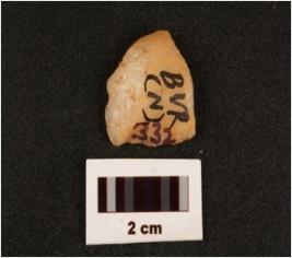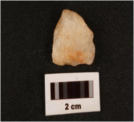| Description / विवरण | A quartz flake with flake scars on one side with cortex, fositive bulb on other side. |
