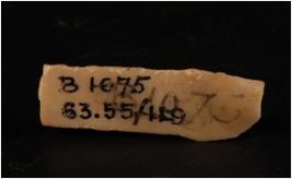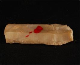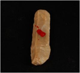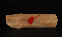 | Description / विवरण | Chert blade with two ridges on dorsal side, trapezoidal in section, bulb on ventral side, ripple marks on the dorsal side and irregular secondary retouches on cutting edges. |